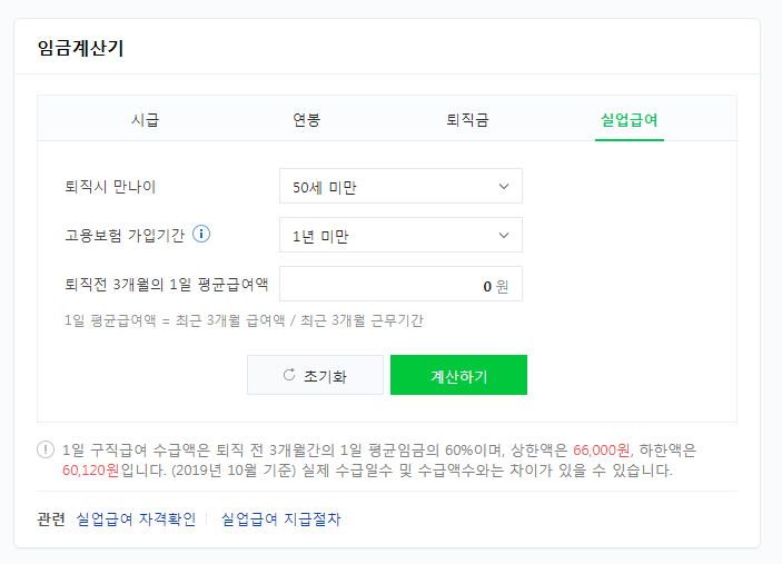 네이버 실업급여계산기는 아래에서 확인