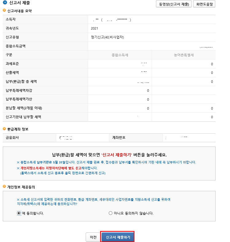 [신고서 제출하기] 버튼을 눌러주면 끝!
